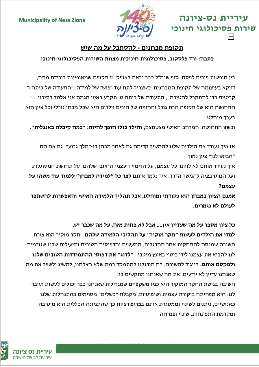 צור קשר - פנייה למוקד העירוני נס ציונה