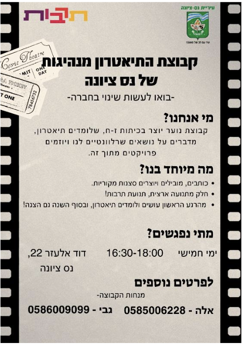 - לפרטים והצטרפות: אלה – 058-5006228 | גבי -058-6009099 | אגף קהילה נוער וצעירים – 08-9400959
