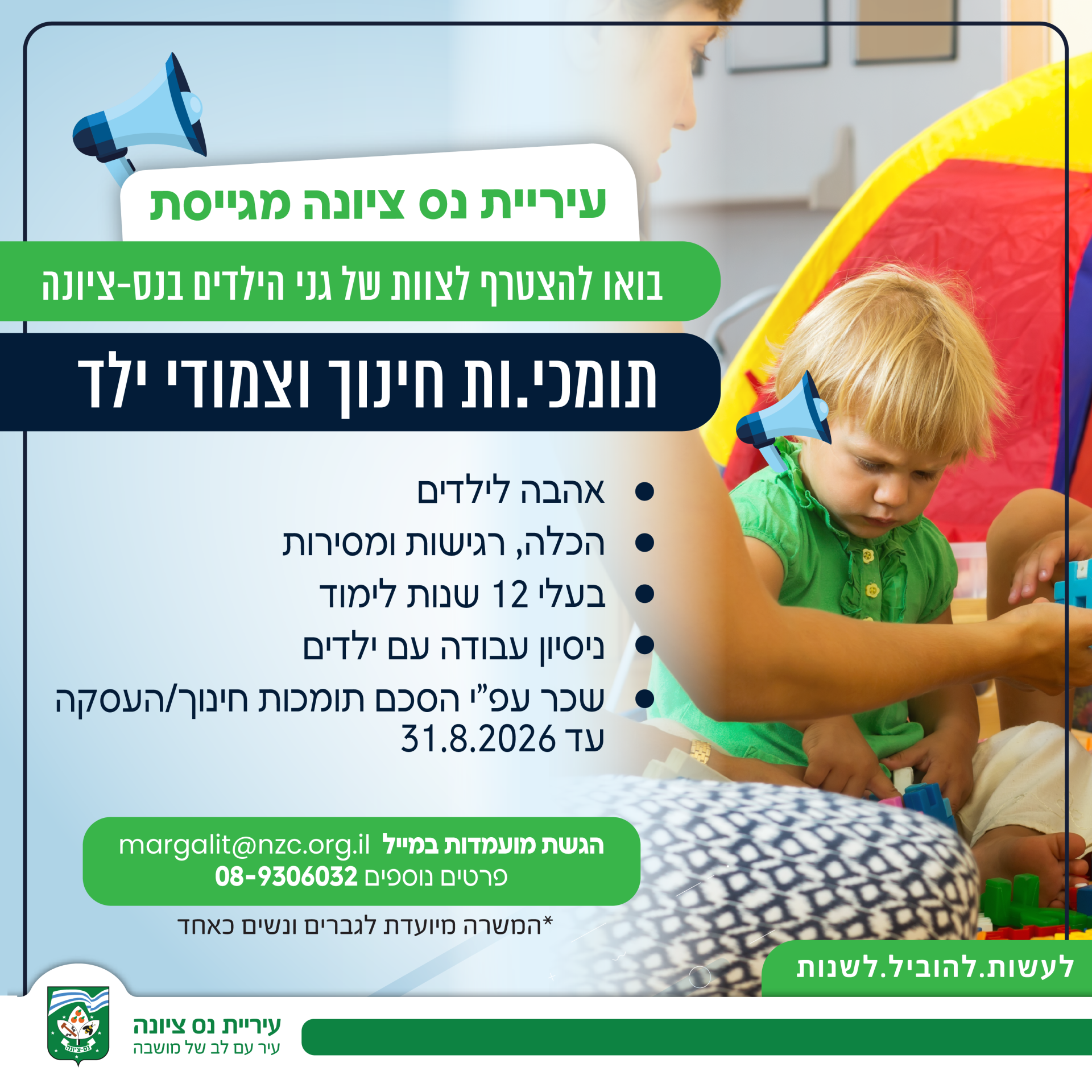 בקשה למלגות לילדי גני הילדים - צהרונים וקייטנות
